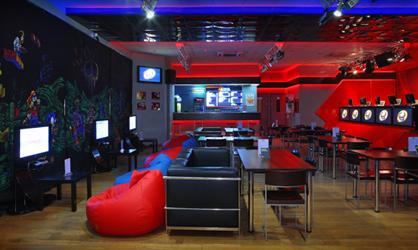 В ИЦ 4Game кроме просторного игрового зала так же имеется небольшой гардероб, рассчитанный на максимально количество присутствующих в клубе. Кроме того, если вы неожиданно проголодаетесь, вашим услугам предлагается бар, в котором вы можете быстро и вкусно перекусить. Среди прочих стоит отметить шикарный интерьер кафе, в котором вы можете насладиться игрой по Sony PlayStation 3! Расположившись на мягких пуфиках и забыв о вселенских проблемах. Ну и главное преимущество клуба 4Game от других конкурентов – это наличие игровой сцены. Она сделана крайне удобно и в этом помещение есть все условия, чтобы комфортно следить за играми.